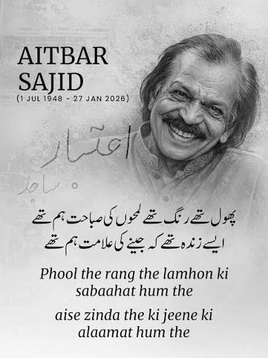 Aitbar Sajid’s literary legacy continues to live on through his poetry, which remains widely read and shared. His contribution to Urdu literature has secured him a lasting place among Pakistan’s most respected poets.